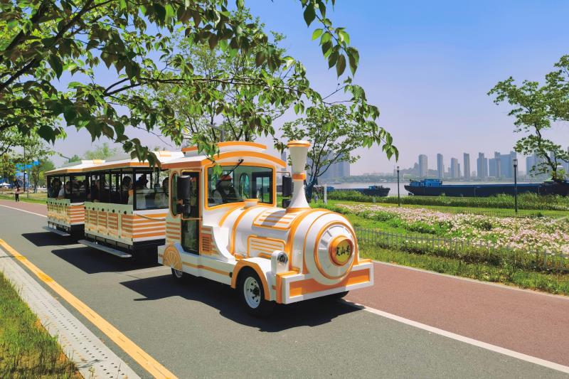 联动滨江岸线资源,先后举办“杏花节”“长江潮音乐节”等活动,加速引客增流,激发新区文旅市场活力。扬子江生态公园开通了“定山号”小火车观江游线路,作为江北唯一穿行在长江边的旅游小火车,“定山号”一路穿行公园内长江T台、轮渡桥滩等景点,打造滨江观光“最美岸线”。